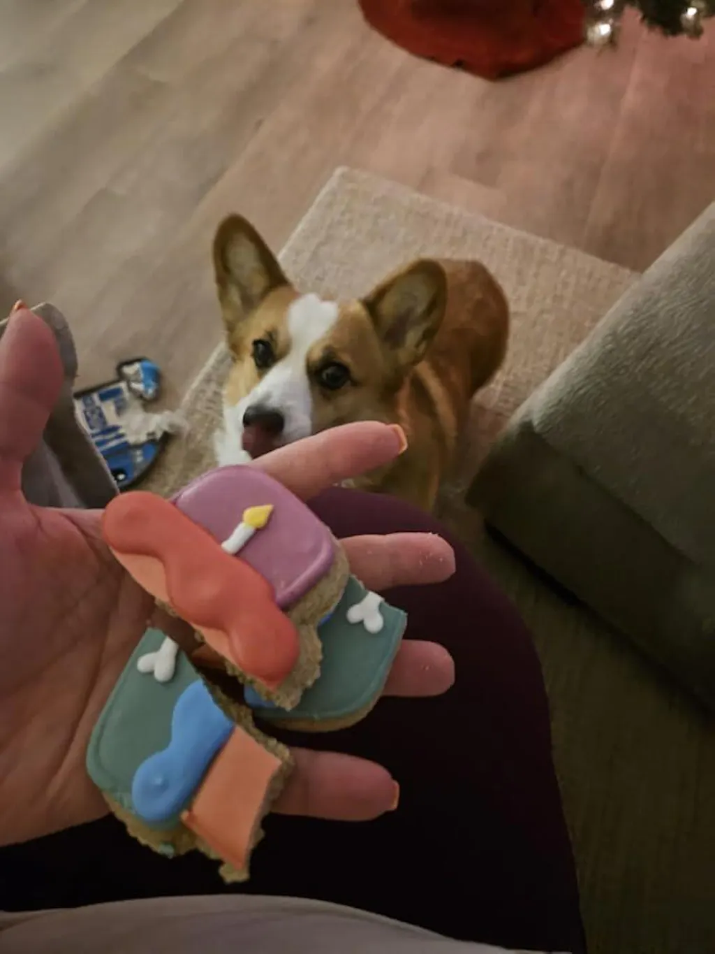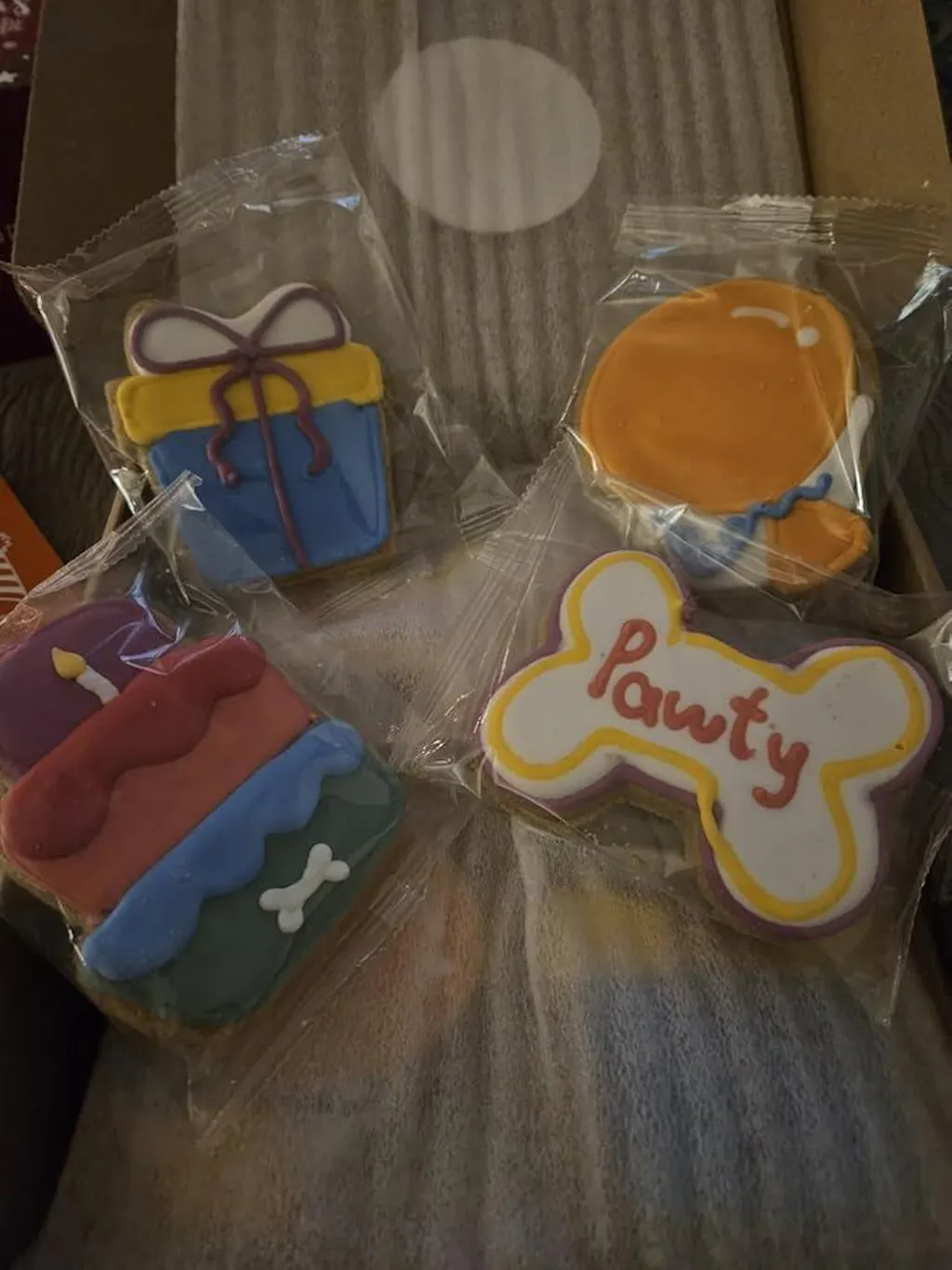 Celebra el cumpleaños de tu perro con una galleta extra grande de 62 g, hecha con avena y decorada a mano con colorantes y saborizantes naturales. Ideal para cortar en pequeños pedazos y consentirlo día a día. Su delicioso sabor a tocino la hace irresistible, y su tamaño y textura la convierten en el regalo perfecto para un cumpleaños muy especial.